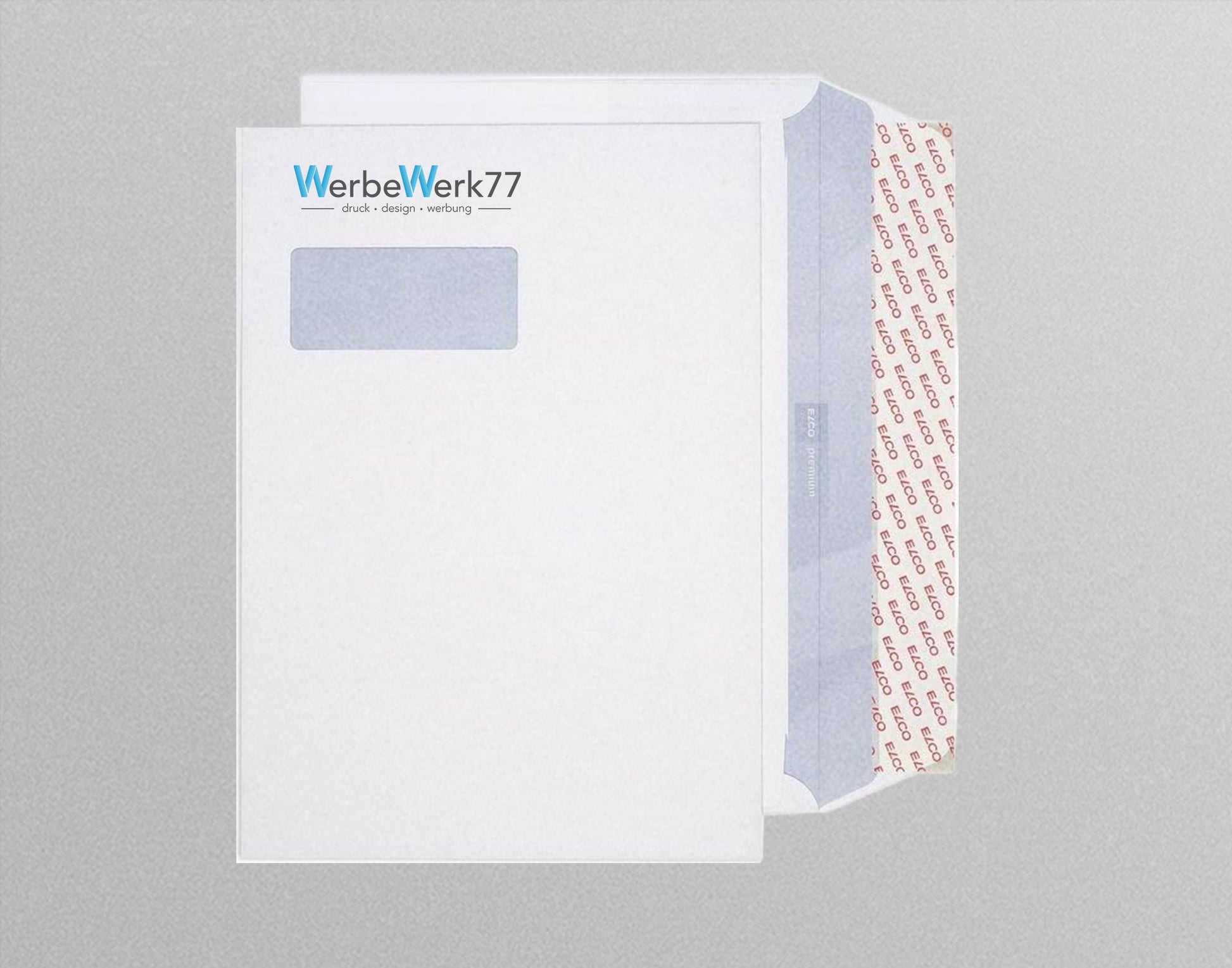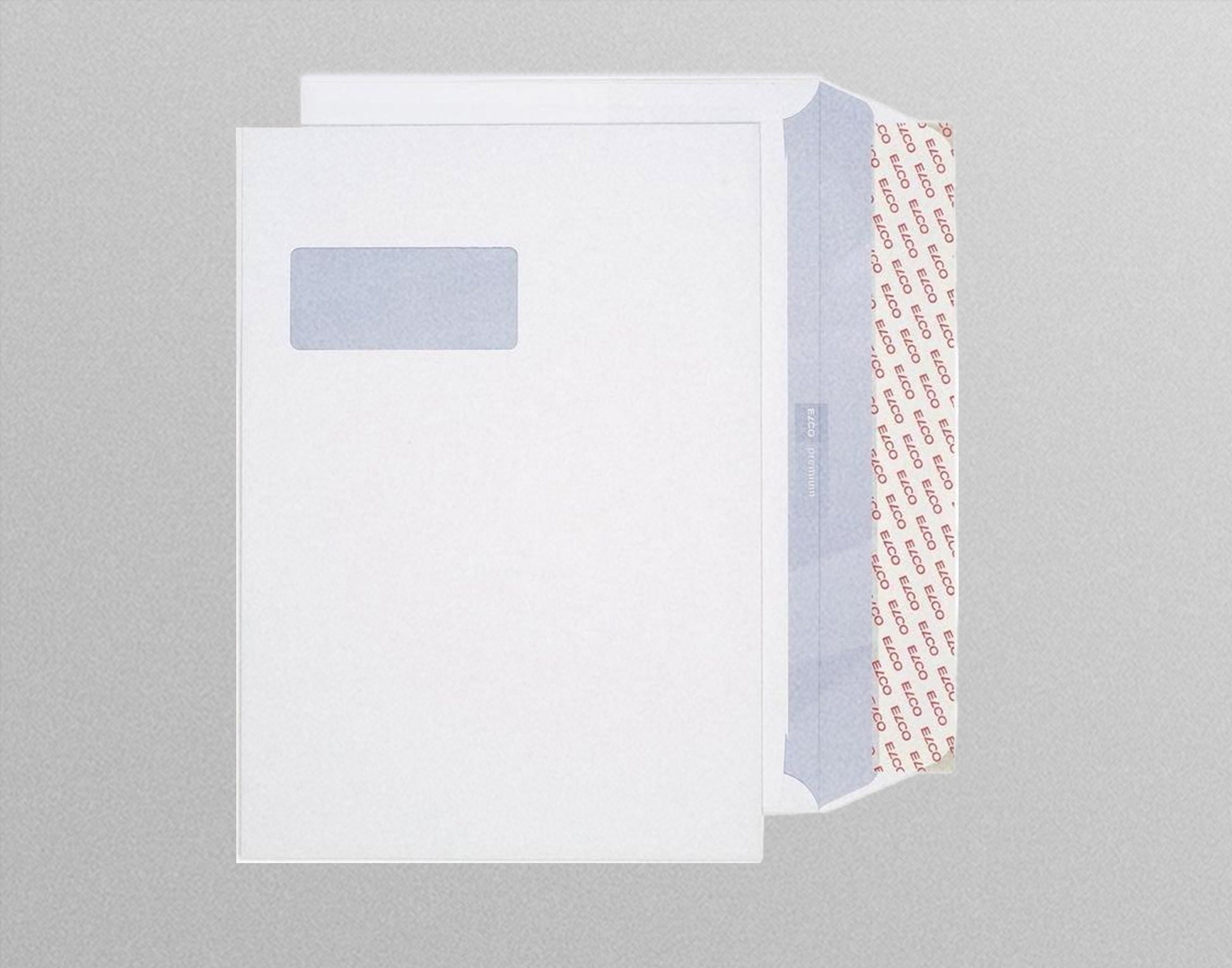 Formate: C4 (229 × 324 mm) oder C5 (162 × 229 mm), Fenstergrösse 100 × 45 mm